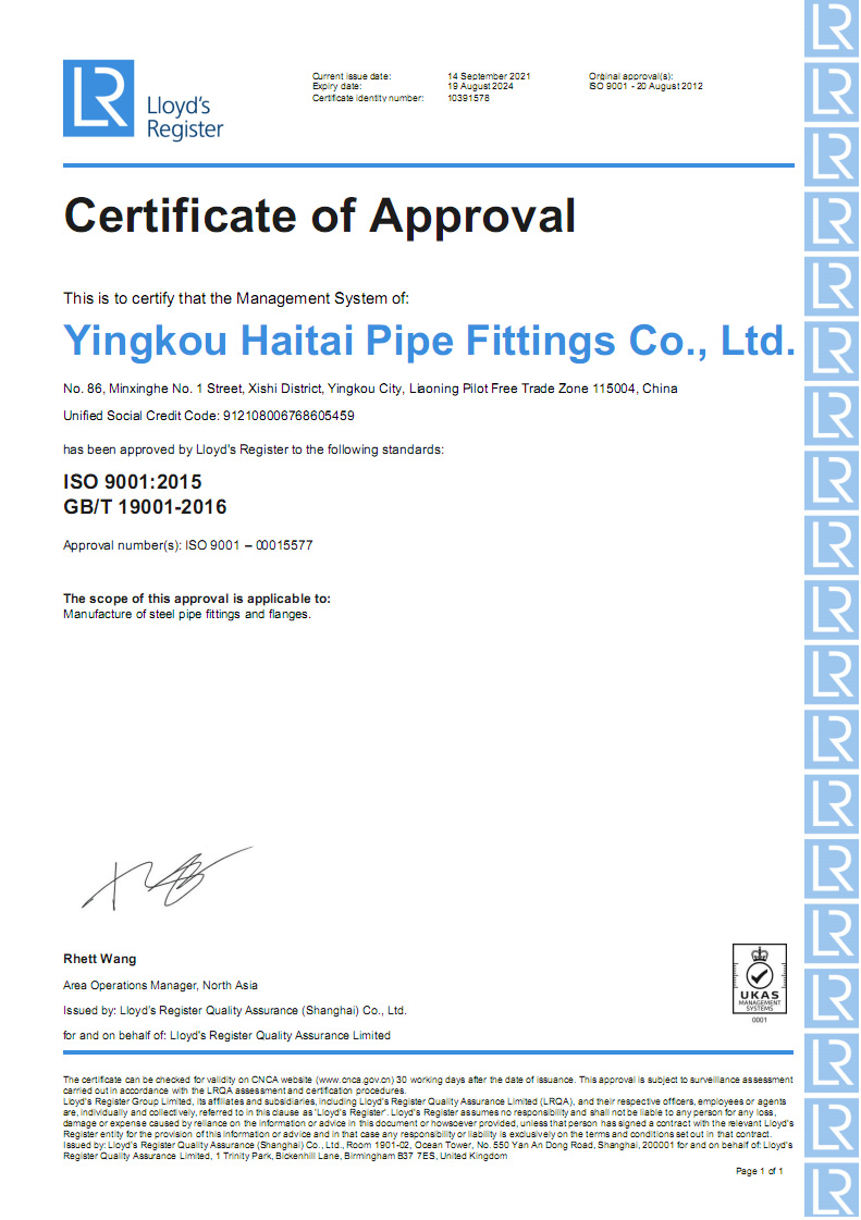 營(yíng)口海泰金屬管業(yè)有限公司成立于2001年,是專(zhuān)業(yè)生產(chǎn)管道配件的制造經(jīng)營(yíng)企業(yè)。公司占地面積兩萬(wàn)五千平方米,坐落于中國(guó)遼寧省港口城市營(yíng)口。營(yíng)口一市兩港(營(yíng)口港、鲅魚(yú)圈港),東臨大連港四季通航,陸路運(yùn)輸四通八達(dá)交通便利。
